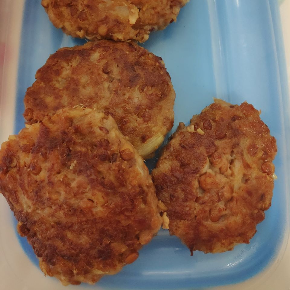 - Una vez fría la mezcla, dar forma a la hamburguesas y en la sartén con un pelín de aceite para que no se pegue, vuelta y vuelta.