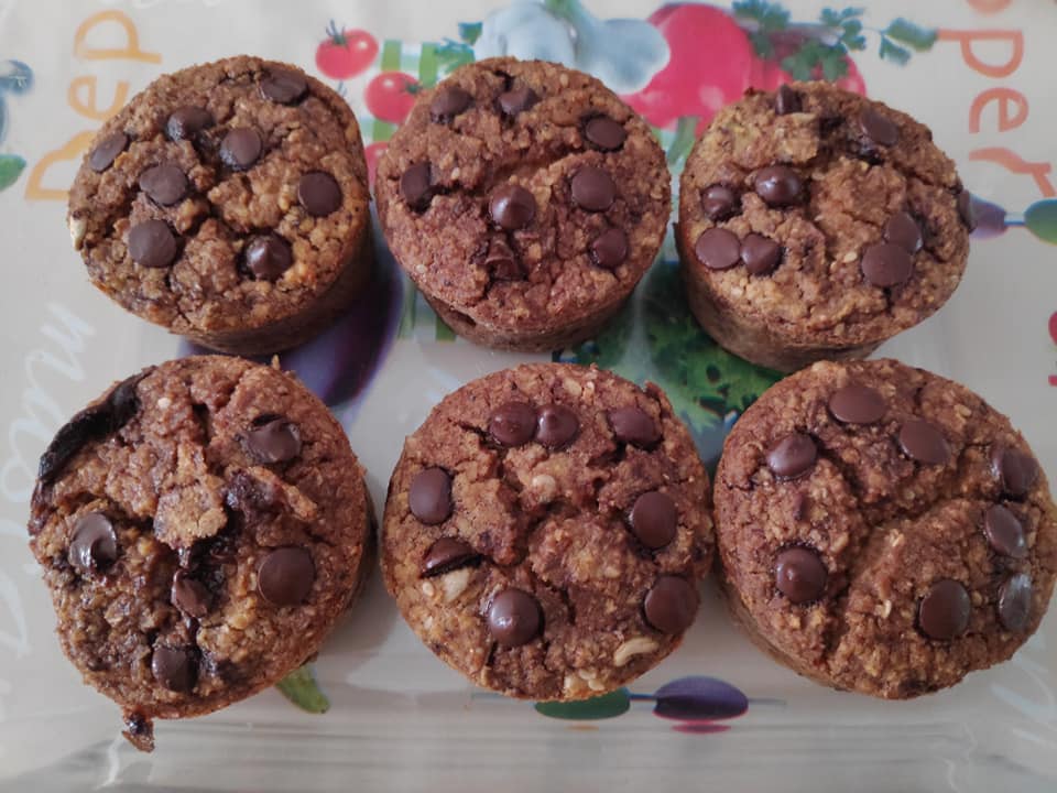 - Rellenar los moldes para magdalenas hasta el tope con la mezcla y decorar con pepitas de chocolate.