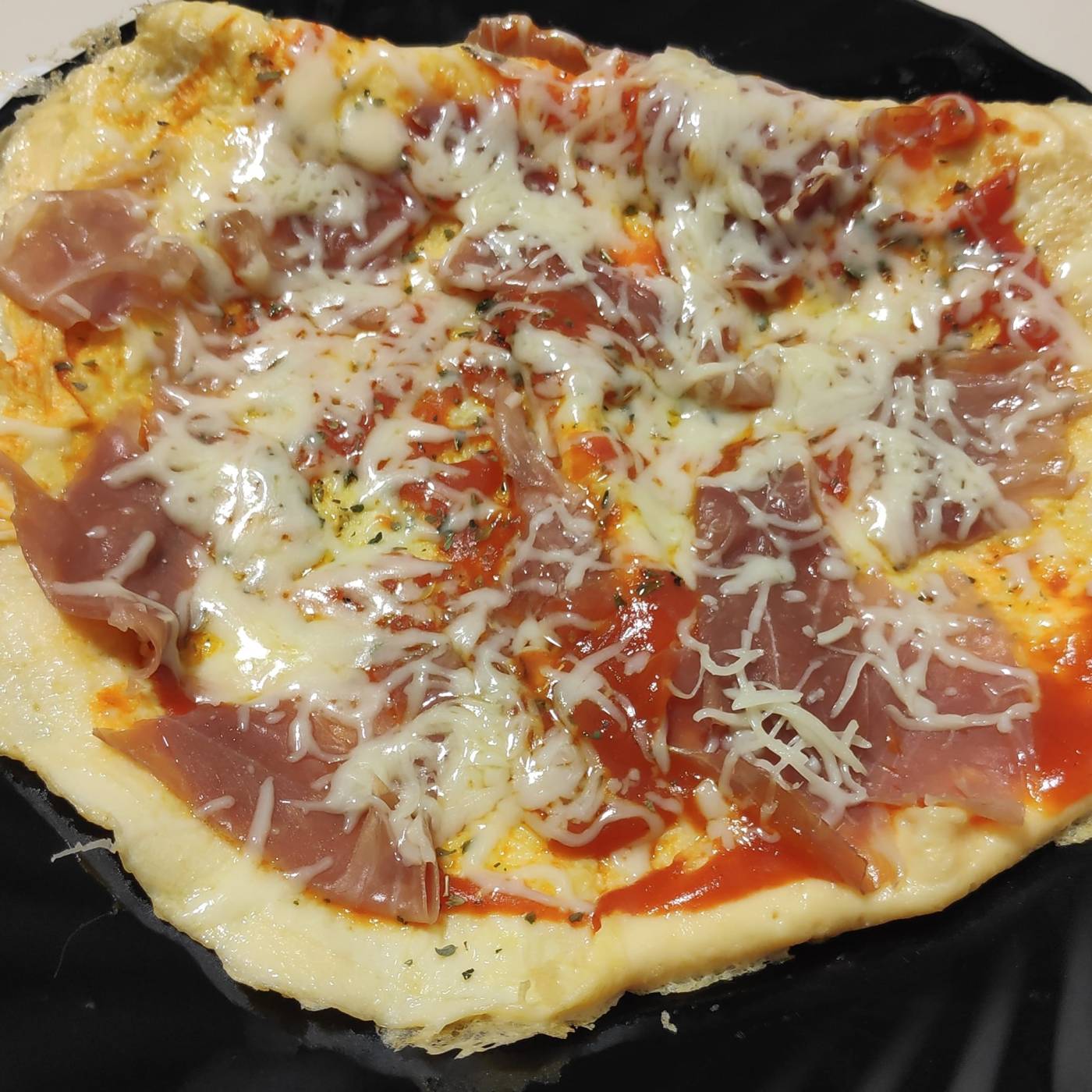 - Acto seguido, añadir el tomate y esparcirlo con la ayuda de una lengua, el orégano, trozos de jamón serrano y el queso.