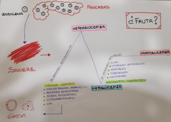Tras la publicación del otro día, surgió una pequeña duda de si el azúcar de la fruta (fructosa) es bueno o malo. Con este intento de infografía 🤪 pretendo explicarlo un poco. Cuando ingerimos azúcar simple (panela, zumos envasados, un bollo...) entre otros efectos negativos, lo que hace es absorberse rápidamente (no nos produce saciedad,... Leer más →