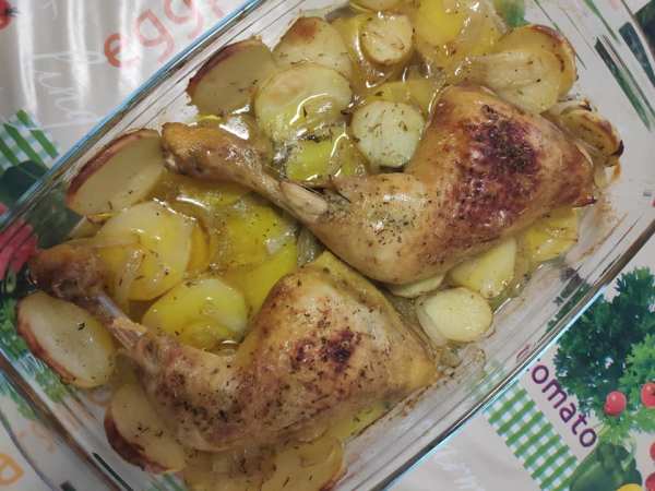 Me encanta el pollo asado con patatas y hoy os traigo una receta muy TOP a la par de sencilla que no dejará indiferente a nadie. ANOTA: 2 muslos de pollo de corral1/2 cebolla1 patata1/2 lata de cervezaTomillo, comino, pimienta negra, sal y AOVE PASOS: Precalentamos el horno a 220°C.Pelamos, lavamos y cortamos la patata... Leer más →